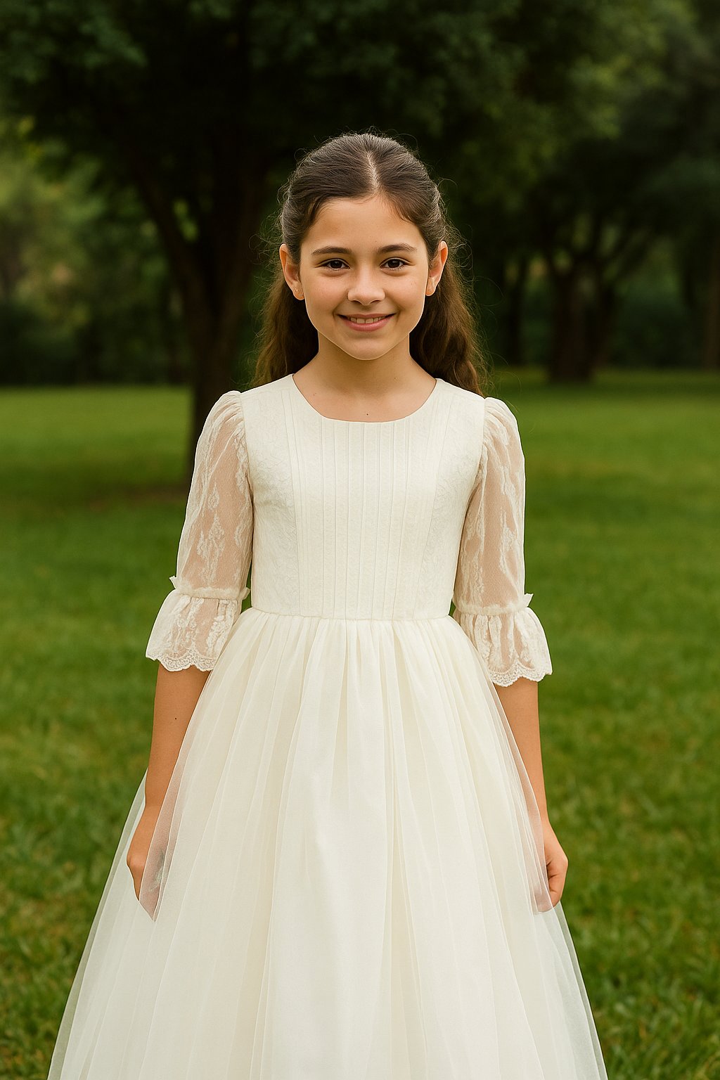 Vestido de Primera Comunión “Larissa” – Tul Suave, Manga 3/4