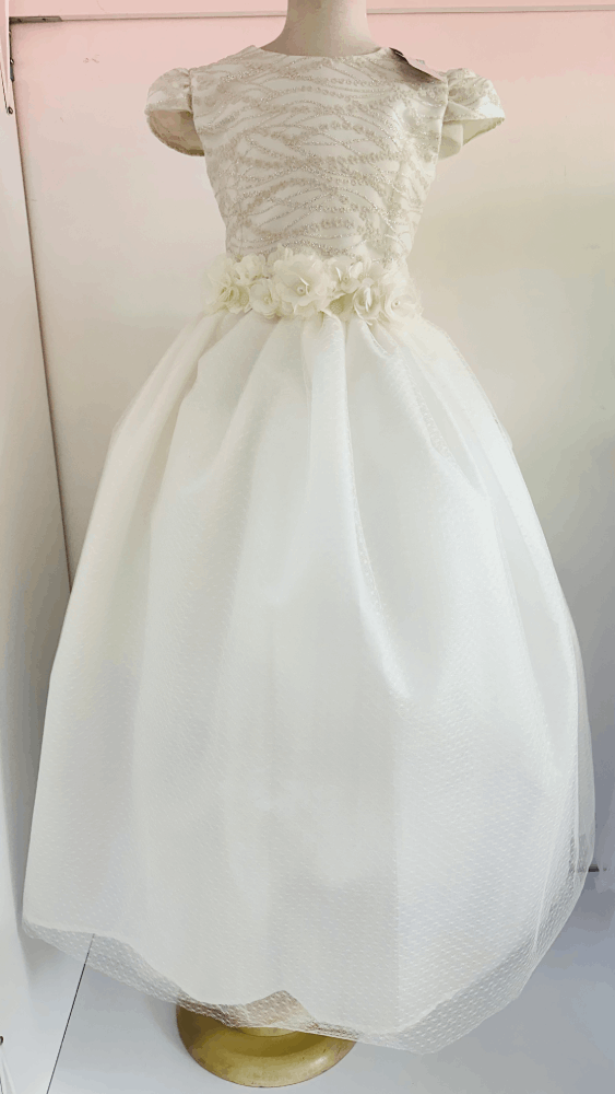Vestido de Primera Comunión “Macarena” – Con brillos, Manga Corta